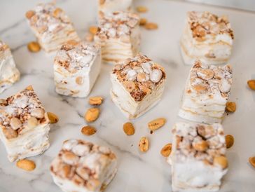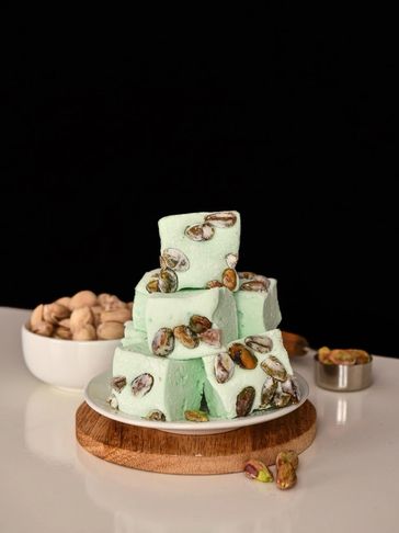 Ingredient List: Sugar, Light Corn Syrup (Light Corn Syrup, Salt, Vanilla), Water, Pistachios (Sea Salt), Confectioners’ Sugar