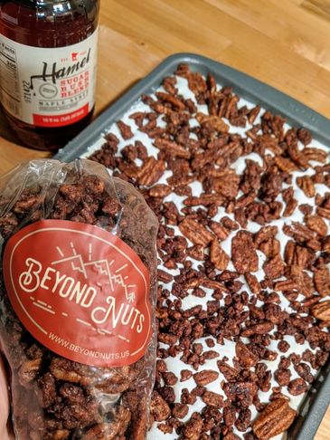 Ingredient List: Sugar, Light Corn Syrup (Light Corn Syrup, Salt, Vanilla), Water, Confectioners’ Sugar (Sugar, Cornstarch), Jack Daniels Honey Bourbon Alcohol, 100% Pure Maple Syrup, Beyond Buts Candied (Pecans, Cinnamon), Gelatin, Salt, Soybean Oil, Soy Lecithin