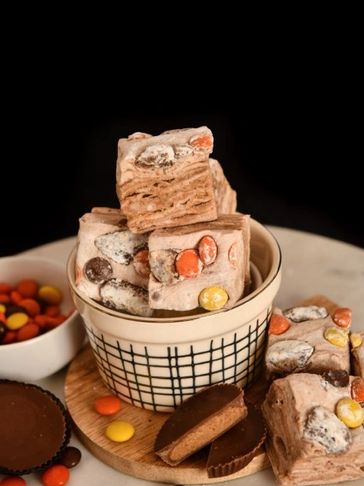 Ingredient List:Sugar, Light Corn Syrup (Light Corn Syrup, Salt, Vanilla), Reese’s Pieces (Sugar, Peanuts, Partially Defatted Peanuts, Hydrogenated Vegetable Oil (Palm Kernel And Soybean Oil), Corn Syrup, Contains 2% Or Less Of: Dextrose, Artificial Color (Yellow 5 Lake, Yellow 6 Lake, Red 40 Lake, Blue 1 Lake), Palm Kernel Oil, Confectioner's Glaze, Cornstarch, Modified Cornstarch, Salt, Lecithin (Soy), Carnauba Wax, Vanillin (Artificial Flavor), Reese’s Cups (MILK CHOCOLATE (SUGAR, COCOA BUTTER, CHOCOLATE, SKIM MILK, MILK FAT, LACTOSE, LECITHIN (SOY), PGPR), PEANUTS, SUGAR, DEXTROSE, CONTAINS 2% OR LESS OF: VEGETABLE OIL (PALM OIL, SHEA OIL, SUNFLOWER OIL, PALM KERNEL OIL, &/OR SAFFLOWER OIL), HYDROGENATED VEGETABLE OIL (PALM KERNEL OIL, PALM OIL), SALT, PGPR, TBHQ & CITRIC ACID (TO MAINTAIN FRESHNESS), Milk, Water, Confectioners’ Sugar (Sugar, Cornstarch),